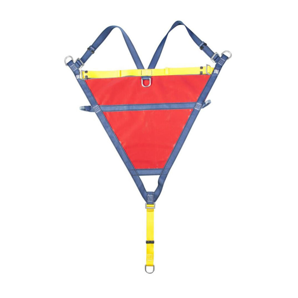 Trójkąt ewakuacyjny z szelkami, przeznaczony do bezpiecznej ewakuacji osób o masie do 140 kg. Wykonany z wytrzymałych materiałów, zapewnia stabilność i komfort podczas transportu.